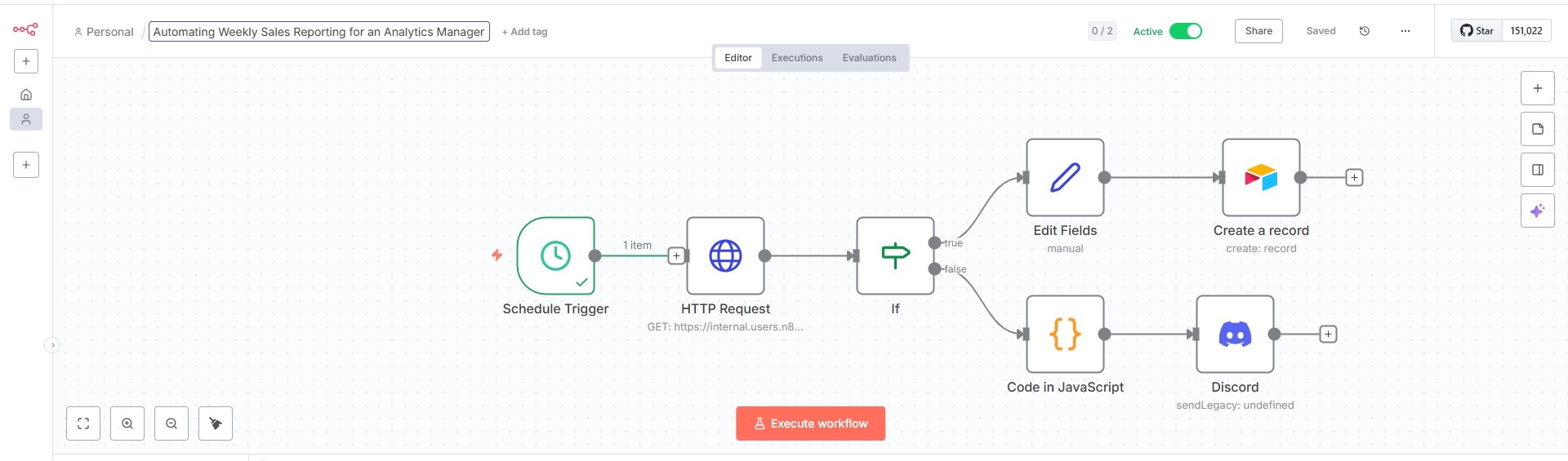 Automated Weekly Sales Report for a Sales Manager using N8N