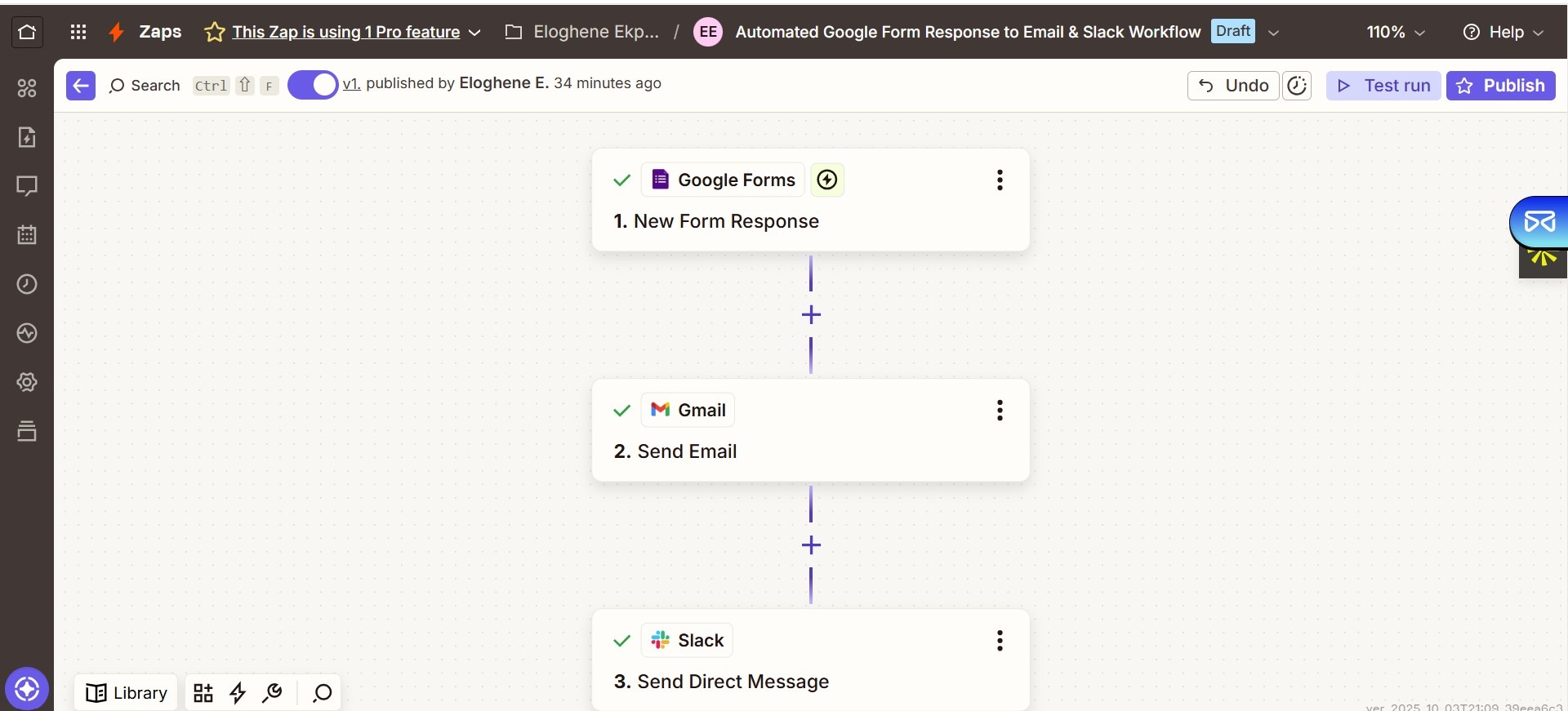Automated a Google Form workflow that instantly sends responses to Email and Slack channels, improving communication and response time.